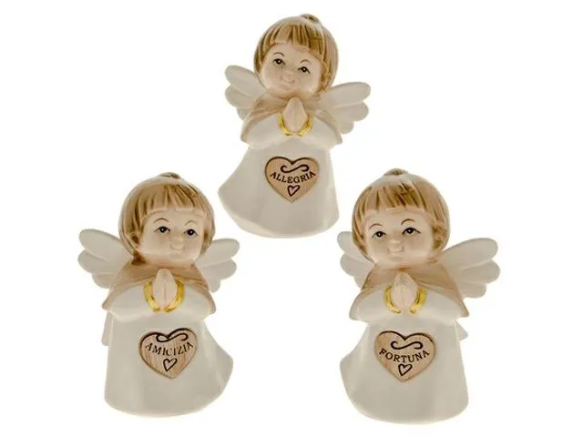 ANGELO IN PORCELLANA CON CUORE: FORTUNA, ALLEGRIA, AMICIZIA 25CM H.